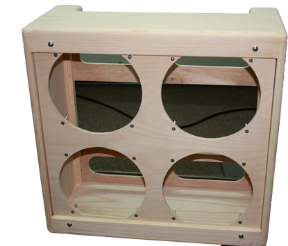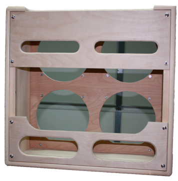 The chassis cutout is 17-1/2" x 2-7/16. The outside dimensions of the cabinet are 22-5/8" high by 23-1/2" wide by 10-1/4" deep at the bottom and 9 1/4’’ at the top